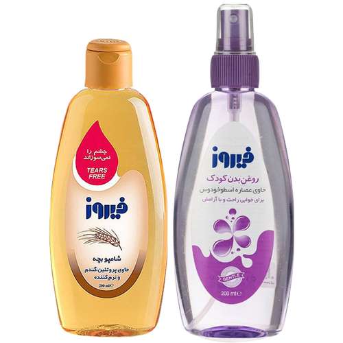 شامپو بچه فیروز مدل پروتئینه حجم 200 میلی لیتر و روغن بدن بچه فیروز مدل اسطوخودوس حجم 200 میلی لیتر